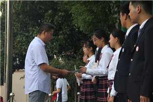2019年9月29日,晴空万里,金桂飘香,国际新利娱乐网官网举行“国旗下成长 砥砺中奋进”庆祝中华人民共和国成立70周年主题升旗仪式。本次升旗仪式由高一1班的沈昶成同学主持。