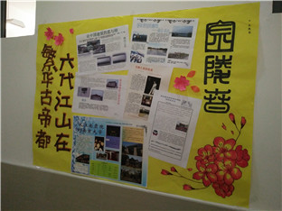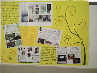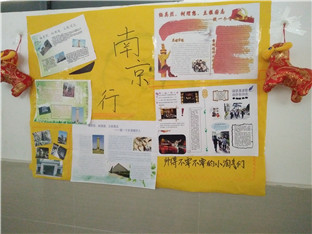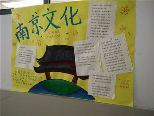 为了更好的总结金陵之行,此次高一年级走廊文化的主题就定为南京小报的展示。小报的内容大致分为缅怀先烈和古迹游览两大类。例如高一(6)班所展出的两张小报,一张以缅怀革命先烈为主题,展出了革命先烈的事例、名言等,同时总结了自己的想法,既表达了对于先烈的怀念哀思,又表达了对于和平的追求和对未来的展望。而另一张小报则以参观总统府和灵谷寺为主题,将总统府的庄严辉煌和灵谷寺的古色古香描述地淋漓尽致,向我们展示了昔日古城的美丽风光。高一年级各个班级的展示各具特色,将优秀的作品、南京的风景风情、同学们的卓越风姿做出展示,将走廊文化变成一种大家一起参与的文化。