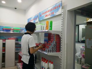 2016年7月19日,是同学们第一次来天平社区的慈善超市做志愿者活动。这个超市虽不大,但是货柜上却摆满了许多各式各样的商品,都是一些日常的必需品,而来买东西的也大多是附近的居民。这些居民是这家超市的常客,所以都与负责超市的两位老师熟悉了,买东西时还不忘聊上几句。