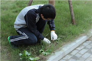 来到拔草的指定位置,眼前绿草坪中参杂着许多杂草,参差不齐,影响了草坪的纯净和美观。班主任嘱咐着哪些植物的保留,哪些可以除去等注意事项后,同学们便撸起袖子,弯下腰,毫不犹豫开始拔草了。尽管没有手套的保护,也没有一个同学抱怨泥土沾满了自己的双手,更没有人在意衣服上裤子上沾满的草、泥。相反,他们把拔草当作了乐趣和竞赛,比较着谁拔的杂草多。嗅着从双手散发出的泥土气息,看着身边忙碌着,以此为乐的同学们,感受着冬日午后阳光的普照,不仅感叹时光的美好,每个人都把这项劳动当作乐趣,当将收集来的杂草放入垃圾箱里,占满了整个垃圾箱时,一种自豪感油然而生。
