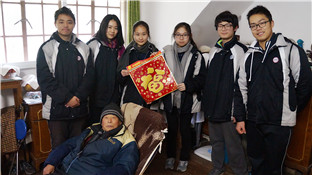 1月30日下午,高二4班团支书华琦雯与蔡汪浩、王睿琳、王天霄、章乐、周俊成六位同学,在太原居委会老师的带领下,拎着丰富的慰问品,来到一名老干部家中。他们和老干部聊天,听他与太太讲述自己的当兵经历,感慨万分。在大门上,他们贴了一个“福”字,希望老人家幸福安康。临走时,两位耄耋老人不辞辛苦地走下高高的台阶,执意要送大家离开。他们不希望得到许多物质上的慰问,而更多的是精神上的,希望有陪伴者聆听他们的往事。祝愿他们以年轻,积极的心态,继续笑看人生。