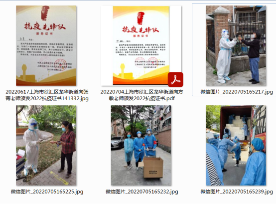 2022年6月下旬,随着疫情的渐渐好转,各街道党组织和办事处都在表彰在这场抗疫阻击战中冲在最前沿的各路志愿者,他们有一个响亮的名字“抗疫先锋队”。近日,我校有同住在一个街道的方敏和张菁两位老师都收到了徐汇区龙华街道颁发的“抗疫先锋队服务证书”。