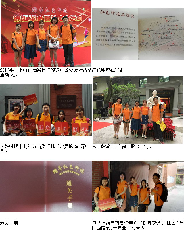 2016年6月16日(周四)上午9:00,市二中学档案员参加在宋庆龄故居举行的2016年“上海市档案日”徐汇分会场活动启动仪式,徐汇区档案局为纪念中国共产党建党95周年,配合以“中国共产党人的家国情怀”为2016年“上海市档案日”宣传活动主题的要求,联合天平街道,以“踏寻红色遗址活动”为载体,以亲身亲眼走访红色遗址为的活动形式,组织区内档案工作人员全面参与,以五人为一队,集体按照任务书指令步行到达每个点标并完成任务得到目标点的盖章。